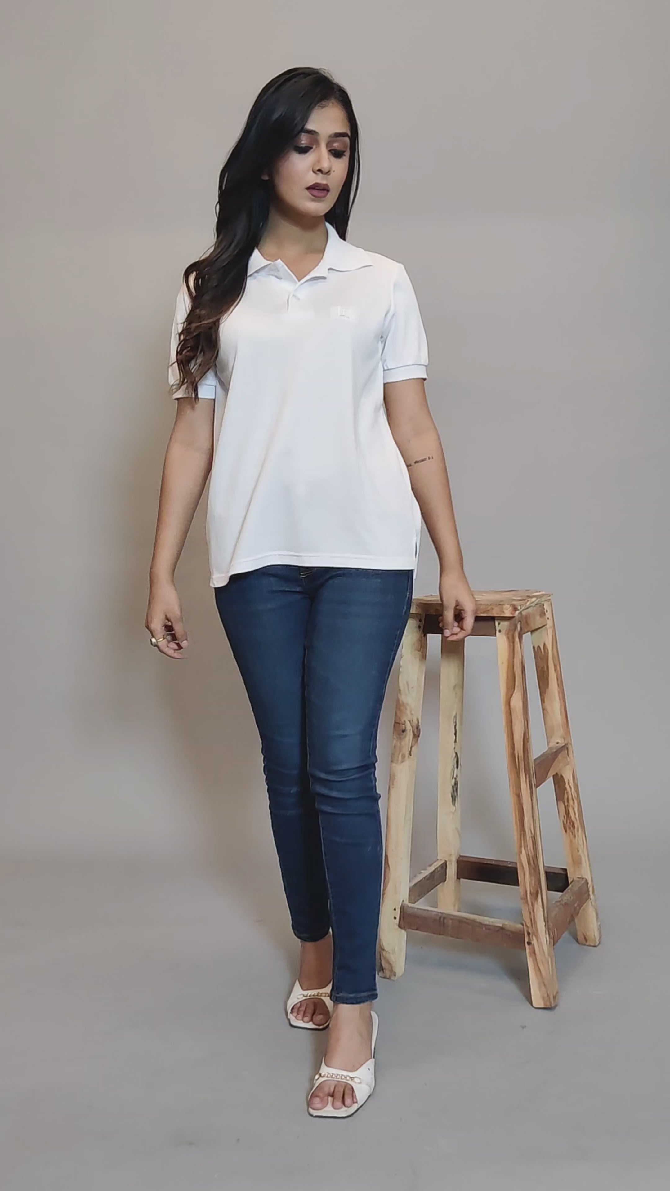 Lykcon Women's Polo Neck Premium Cotton T-Shirt- Solid White